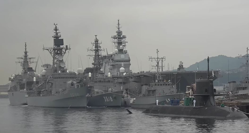 Vídeo de la Base naval japonesa de Kure, en el que se ven a la perfección diferentes tipos de barcos, destacando al fondo el portaaviones Kagata. (Vídeo: 慶剛)