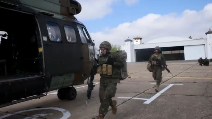 Ejercicios de helitransporte e infiltración con soldados de la Guardia Real en la Base de ‘El Copero’ en Dos Hermanas (Sevilla). (Vídeo: El correo de Andalucia, Txetxu Rubio)