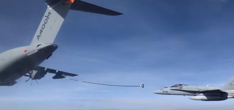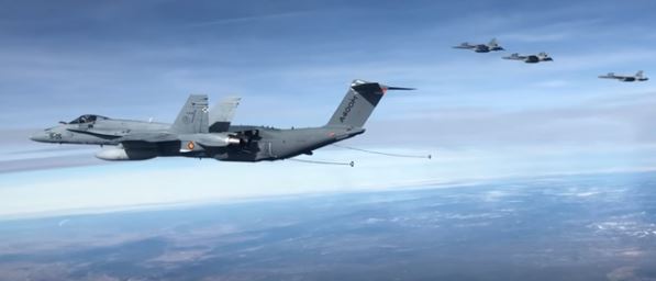 El Ejécito del Aire participó en una misión de reabastecimiento con la participación del A400M y seis F-18 (Vídeo: Ejército del Aire)