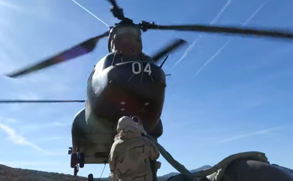 Vídeo en que se aprecia perfectamente el procedimiento por el que efectivos de las Famet cargan tres bultos pesados en un Chinook mediante eslingas enganchadas a la “panza” de este coloso. (Vídeo: Beatriz M. Blancas)
