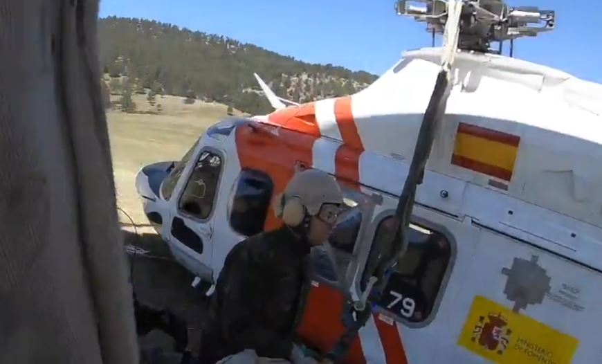 Un Chinook de las Fuerzas Aeromóviles del Ejército de Tierra rescata un helicóptero accidentado en una zona inaccesible de la Serranía de Cuenca , que no podía ser recuperado por ningún otro medio terrestre o aéreo que no fuera el Chinook HT-17 de las FAMET.