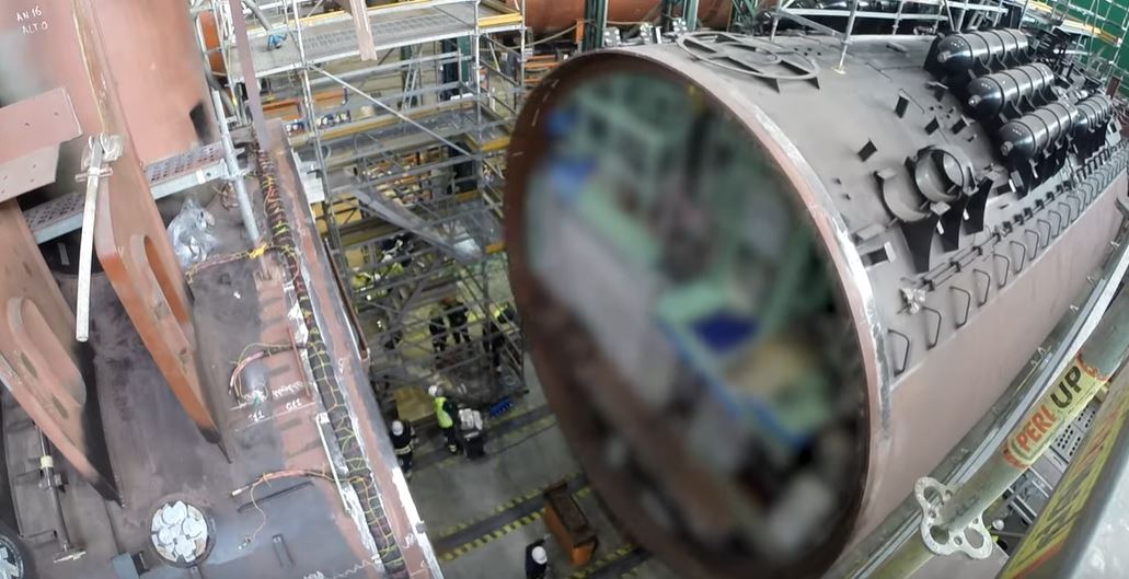 Ceremonia de la unión de la última sección del casco resistente del submarino S81 'Isaac Peral'. Astillero Cartagena (Vídeo: Navantia Oficial)