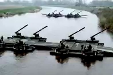 Ejercicio OTAN cruzando ríos gracias a los pontoneros