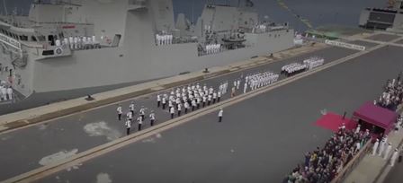 Acto militar durante la entrega de la bandera de Combate a la Fragata Cristóbal Colon durante su estancia en Palos de La Frontera