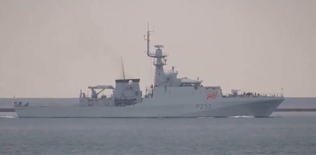 El último buque estrenado por la Royal Navy, el H. Tamar P233, navega luciendo su imponente estampa hacia el mar de Plymouth Sound nada más realizar su primera navegación en Plymouth (Vídeo: Warship TV)