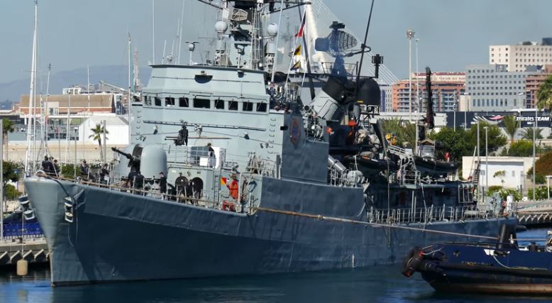 La corbeta Infanta Elena arrastrada por los remolcadores en el puerto de Valencia