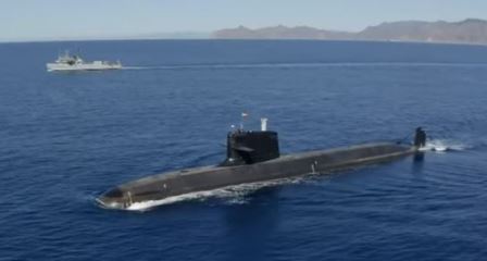 La primera navegación del submarino S-81 "Isaac Peral" de la Armada española vista desde el cielo (Navantia)