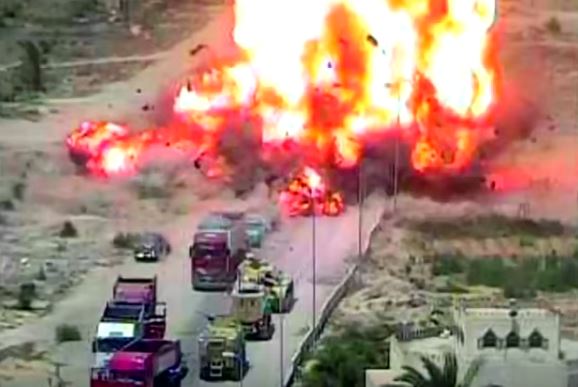 M-60 Egipcio pasa por encima de un coche-bomba en un control