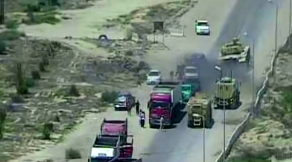 La tripulación de un carro egipcio M-60 decide pasar por encima de un coche al ver que en su interior había personas con cinturones de explosivos. (Vídeo: Nerti U. Qatja)