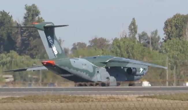 KC-390 utilizando el sistema inversor de empuje (Vído: Vídeos de defesa)