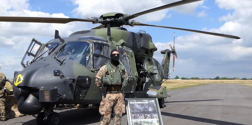 En el vídeo se ve a la tripulación del helicóptero NH90 en una demostración estática mostrando las diferentes capacidades y equipos del KSK, armas, telecomunicaciones, servicios médicos, logística, etc. (Vídeo: BTB-concept)