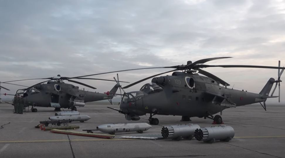 El presidente de Serbia pasa revista a los Mi-35M, H-145M y Mi-17 recientemente adquiridos.
