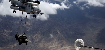 Helicóptero CH-53E Super Stallion del Cuerpo de Marines, cargando un vehículo militar HUMVEE mientras se reabastece. ¡Esto es pilotar! (Vídeo: USA Military)