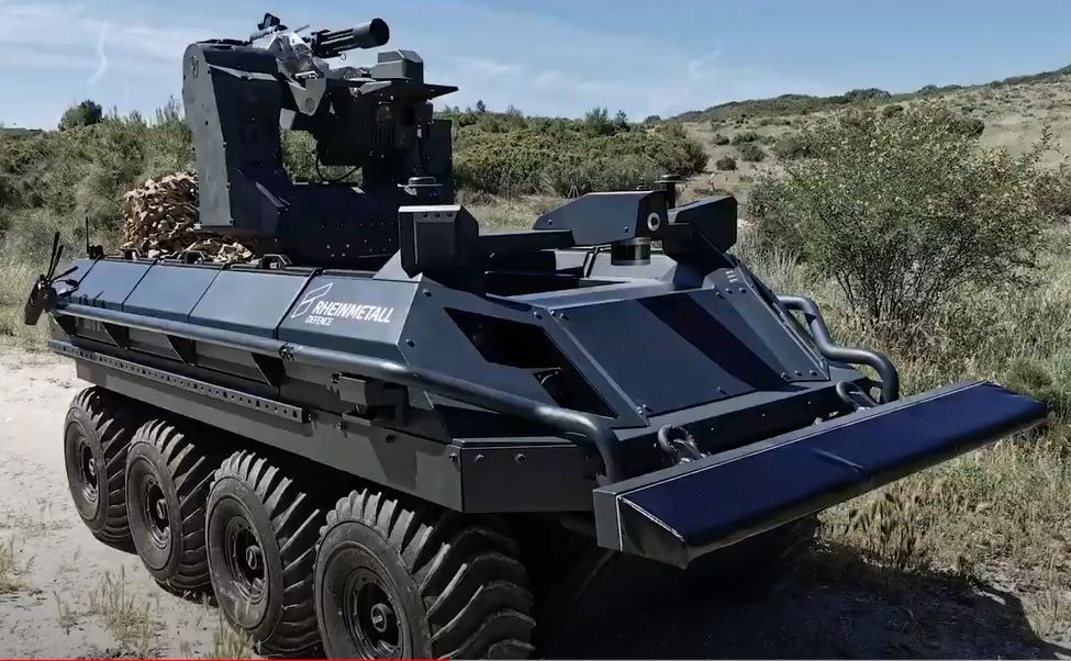 La instalación de la Estación de Armas Remota (RWS) y los sensores OTEOS de la española Escribano Guardian 2.0, al vehículo terrestre autónomo no tripulado (A-UGV) de Rheinmetall ha dado un satisfactorio resultado en los test que se llevan realizando en los últimos meses. (Vídeo: Rheinmetall)