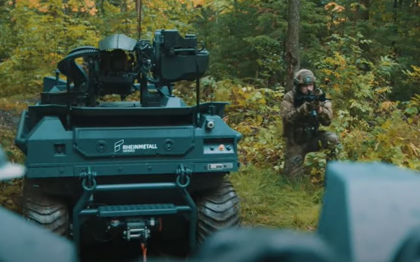 Nuevo A-UGV (Vehículo Terrestre Autónomo No Tripulado) de Rheinmetall está equipado con tecnología de recolección de información y sistema de armas Rheinmetall Fieldranger a control remoto para obtener información táctica y proporcionar apoyo de fuego a los soldados cuando sea necesario. (Vídeo: Rheinmetall Defence)