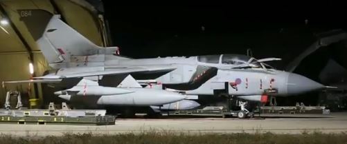 Vídeo publicado por el Ministerio de Defensa británico de los Tornados elegidos para bombardear unas instalaciones de armas químicas Siria.